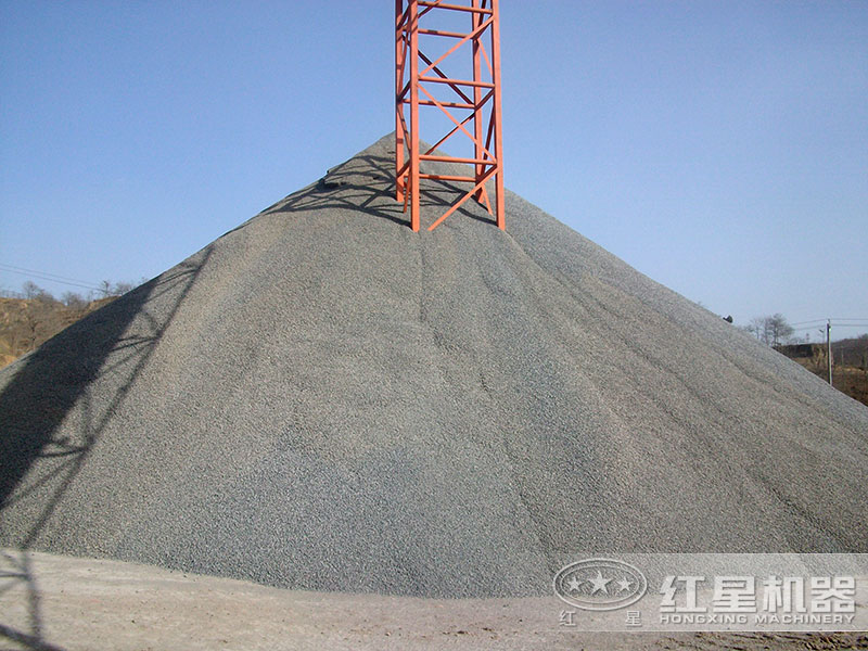 流程:原料經(jīng)振動給料機簡單地去除泥土廢料后,送入粗碎設(shè)備中進行初步破碎; 之后由輸送機運到中細碎設(shè)備處進行二次破碎;接下來由振動篩篩分大骨料,再由制砂機進行制砂后再次篩分小骨料,結(jié)尾工作為除塵、選粉。