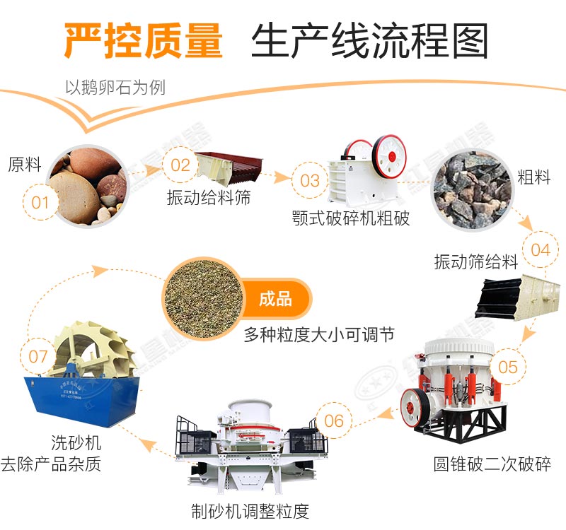 根據環(huán)境、地質、氣候、為客戶規(guī)劃科學合理的生產線流程設計,做到售前服務、售中服務、售后服務的承諾。下圖中的流程可根據用戶的實際生產需求進行方案調整。